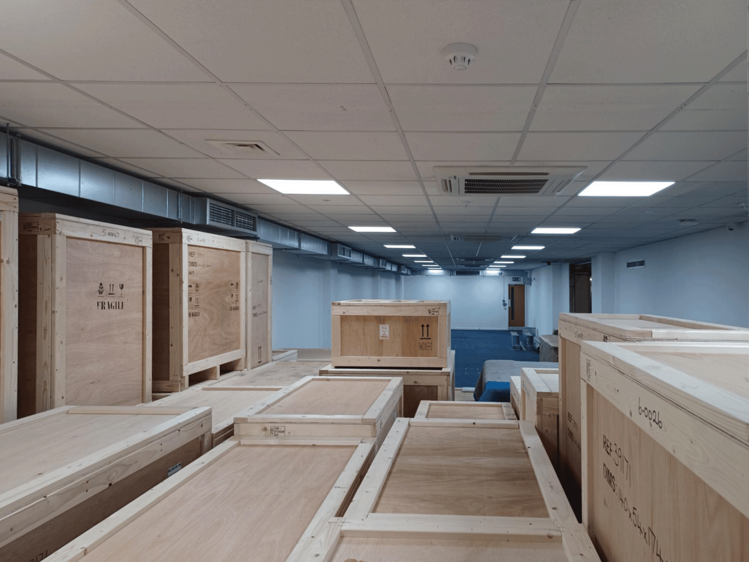Air Sea Packing, an international shipping and logistics company - located just outside Oxford - known for its white-glove service — specialised, high-care handling of valuable or delicate items, faced a pressing humidity control issue when transforming a warehouse office into a fine art storage facility. Controlling humidity was crucial, especially given the various factors that can cause fluctuations, including building structure, weather changes, and frequent air changes from people entering the store.